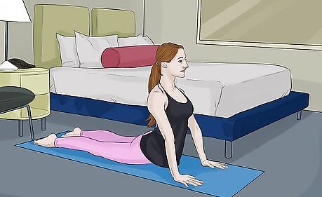 Do yoga on the floor. Bring along a travel yoga mat for a more comfortable surface than your hotel’s carpet, or lay down a towel or a sweatshirt if you’re running low on luggage space. Even a quick yoga session can help you relax and stretch out after a long day of work. Stream sessions online for yoga classes you can take on-the-go.