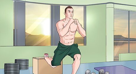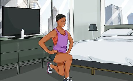 Do bodyweight exercises. Clear the floor of your hotel room and do a few sets of push-ups, sit-ups, squats, lunges, and planks or some light aerobics, like jumping jacks. Ask a trainer at your gym or research “do anywhere” workouts online or on fitness apps for creative, blood-pumping workouts that don’t require equipment.