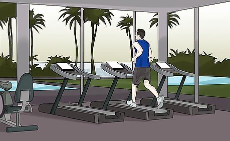 Try to choose a hotel with a fitness center and/or swimming pool. If you can, call your hotel ahead of time to see if they have a fitness center. Ask how large it is and what kind of equipment it includes. You may be able to do cardio on a treadmill, stationary bike or elliptical, lift weights, or use machines to work different muscle groups. Some hotels that lack their own fitness centers may provide you with free passes to nearby gyms, or they may have free bicycle rental programs or equipment you can use in your room. Ask at the front desk staff what your hotel can offer.
