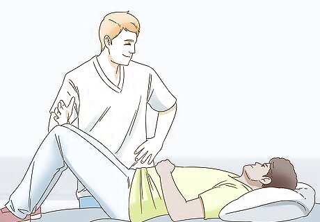 Utilize a trainer or helper when you exercise. Depending upon your disability, this could be a personal trainer, a physical therapist, a physical therapy aid, a nurse, or, in some cases, a friend or relative. This person can make sure that your doctor- and physical therapist-recommended exercises are being done properly and safely. Depending on your condition, you may be more susceptible to injury during exercise, especially if you use improper technique. In this case, it’s especially important to have a helper when you exercise.