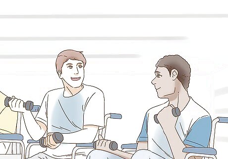 Join or start a disability exercise group if you need motivation and support. Such groups may be available through local hospitals, clinics, gyms, or community centers. Search online and on community boards, or put out a flier and see if there is a need in the community. If you do find you have a number of other disabled people who want to start an exercise group, contact local pools, gyms, or community centers to see if they would be interested in holding classes. Some people feel more comfortable and confident if they exercise alongside others with similar disabilities.