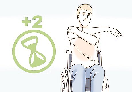 Take a seated yoga or tai chi class for flexibility training. Many common yoga and tai chi maneuvers can easily be adapted to suit people who have mobility issues or who utilize a wheelchair. Both yoga and tai chi will improve your flexibility, and they’re also great ways to reduce stress. Plus, if you take part in a class, you’ll get to socialize with others at the same time. If possible, build up to doing 30 minute sessions 2-3 times per week. You may even be able to make it a daily routine.