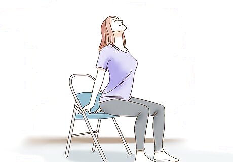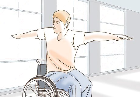 Do seated back extensions to build lower back and abdominal strength. Sit upright in your wheelchair or another sturdy chair, and place your hands next to your ears. Bend slowly at the waist, keeping your lower body and head still and your back straight. Bend slowly until you are parallel to the floor, then slowly raise yourself back up to the starting position. Build up to 3 sets of 10-12 reps, if recommended by your doctor. Exhale as you bend down, and inhale as you come back up.