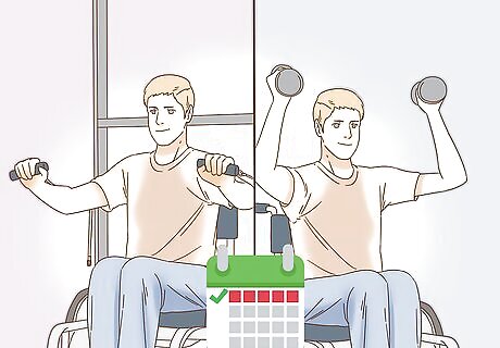 Learn proper exercise techniques by attending physical therapy sessions. Good form is always important when exercising, and can be especially important if you have a disability. A physical therapist, whether prescribed by your physician or sought out on your own, can tailor an exercise regimen that’s suited to your condition. Whenever possible, choose a physical therapist with expertise working with patients who have similar disabilities to yours.