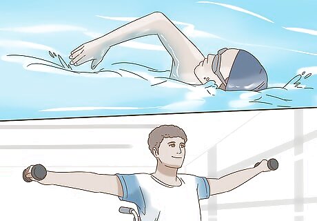 Exercise in water to aid your stamina and range of motion. People with spinal issues, nerve problems, or limited use of one or more limbs often find the added buoyancy of water to be helpful. If possible, look for water exercise classes that are geared specifically toward people with mobility issues or other disabilities. Even if swimming is not possible for you, doing water aerobics or walking in water (with the aid of a weight belt) may be suitable for your circumstances. Talk to your doctor regarding the best options for you.