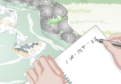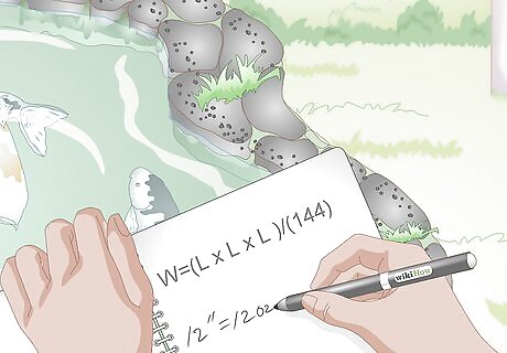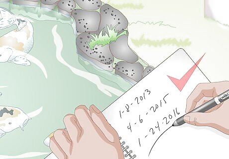 Keep track of age. In order to determine the correct amount to feed your koi, you need to know the age, length, and weight of each fish in your pond, in addition to the water temperature. Find out how old your koi are when you purchase them and keep track of their age over the years. Keep a notebook or file with a description of each fish next to their stats.