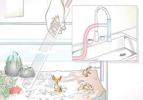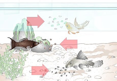 Clean out the tank. Once your fish have finished eating, remove all the excess food from the tank. Leftover food will likely not get eaten later. Instead, it will grow bacteria and dirty up your tank. Make sure you get rid of anything your fish don’t eat to keep the tank clean.