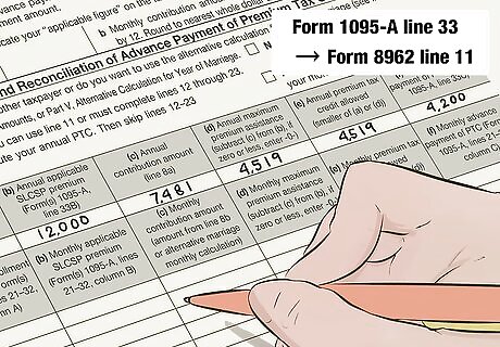 Allocate premium amounts and credits if necessary. If you were married and got divorced or legally separated during the year you're filing your return, you need to split the premiums paid between you and your former spouse. Allocating the premiums is also necessary if you and your spouse are filing separate returns, even if you're still married. Only include the percentage allocated to you on your Form 8962. For example, if you and your spouse divorced and have no dependents, you would split everything 50/50 (assuming you both had Marketplace coverage). If you had dependents, on the other hand, the premiums would be allocated according to which spouse is claiming the dependents. Your allocation would still be 50/50 if you and your spouse have 2 children and are each claiming 1 dependent. If you were claiming both of the dependents, on the other hand, you would allocate 75% of the premium amounts and credits to yourself and 25% to your former spouse.Tip: If you and your spouse divorced or legally separated at any time during the tax year, you are considered divorced or legally separated for the entirety of the tax year.