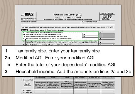 Provide your household income and household size. Part I of Form 8962 allows you to calculate the maximum possible premium assistance you were eligible for during the tax year. Start by providing your household income and modified AGI. You'll need the instructions for Form 8962 to calculate the numbers for the first 3 lines of Form 8962.
