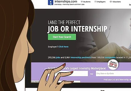 Focus on applying to specific industries or companies. Once you’ve narrowed down what your interests are, direct your attention to companies that offer internships in those subjects or areas. If you love writing, maybe you’ll look at internships related to publishing or journalism, while if you’re interested in nutrition, you might search for internships in the food prep industry or health and wellness programs.