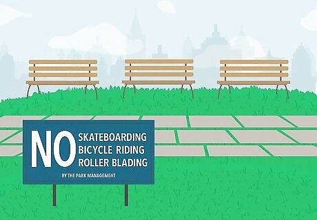 Read the signs in the area you're in. For simple circumstances, answering your question could be a simple matter of paying attention to your surroundings. Very often, signs say if certain activities are prohibited. For example, if you're wondering if skateboarding is allowed in the park, see if there are any signs around saying so.