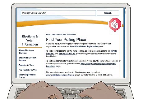 Go online to find your polling location if you are a registered voter. If you are already a registered voter, you can search online for voting information websites that are dedicated to helping you find your polling station and cast your vote. You can enter your personal information to locate your voter registration, which will tell you where you are supposed to go to vote. You can also find your polling location for early voting and information regarding absentee voting, if that's an option where you live. If you live in the U.S., websites like Vote.org or Headcount.org can help you find your voter information with your polling location. Many election office websites also offer sample ballots so you can go to the polls with your choices ready to go!Tip: You can also register to vote online, or make changes to your voting registration.