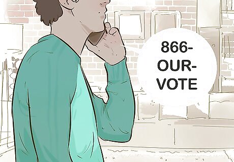 Contact a national hotline to locate your polling station. Your country may have national election hotlines sponsored by organizations dedicated to ensuring that all citizens have equal opportunities to vote and have their votes counted. If your country has a national hotline, and you’re a registered voter, you can call one of them for assistance in locating your polling station. Many organizations also have resources to help arrange transportation to the polls as well. You may also be able to register to vote through the hotline. If you’re in the US, you can call the Voter Hotline (866-OUR-VOTE or 866-687-8683) to find out where you need to go in order to vote.