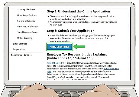 Apply for a new EIN. If you've changed the ownership or structure of your business, it has become a new business entity and requires a new EIN. Go to https://www.irs.gov/businesses/small-businesses-self-employed/apply-for-an-employer-identification-number-ein-online and click the blue button that says "Apply Online Now" to get started. When you apply for your EIN online using the IRS website, you'll get your number immediately. Write it down and keep it in a safe place. The IRS's online application service is only available Monday through Friday from 7:00 a.m. to 10:00 p.m. ET.