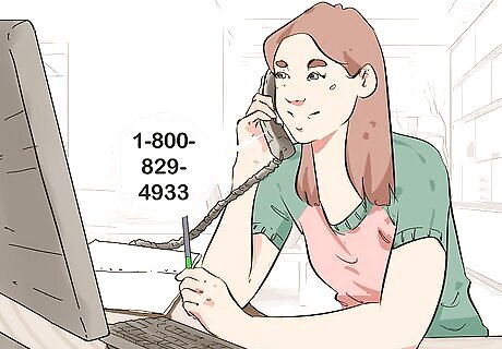Call the IRS to look up your EIN. If you aren't able to find your EIN in your business's records, the IRS can help you. Call the Business & Specialty Tax Line at 1-800-829-4933. Let the agent who answers the phone know that you've lost your business's EIN. The agent will ask you a series of questions to verify your identity and confirm that you're authorized to receive the business's EIN from the IRS.