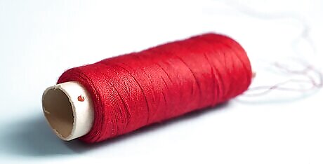 Thread a needle with your chosen thread. Use fabric scissors to cut off a piece of thread from the spool about 24 inches (61 cm) long. Insert one end of the thread through the small hole at the head of the needle. Pull the thread through the hole until the two ends of the thread are the same distance from the needle. Tie the two ends of the thread together to make a knot. Professional Tailor and Fashion Designer Andrea Beaulieu advises to look at the needles’ packaging to ensure you choose one that's right for the fabric you're using. The smaller the gauge, the larger the number. 8 gauge needles are very thick, so they're best for heavy-weight woven garments, whereas 16 gauge needles are very thin, making them great for delicate, lightweight fabrics. Try dampening the tip of the thread by placing it on the tip of your tongue briefly if you're having trouble getting it through the needle hole.
