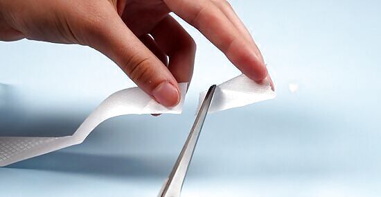Cut out the center of the fusible webbing. You only want to have the webbing where the patch touches the fabric, not the area of the hole you cover. To do this, place the bonding web over the hole so the hole is centered. Trace the hole outline with a fabric pen or pencil onto the webbing. Then use scissors to cut out the outline. Keep the outer piece of webbing when you are done cutting. It should have at least .25 inches (0.64 cm) of bonding web on each side of the hole. The circle you cut out of the center can be thrown away or used for a future project.