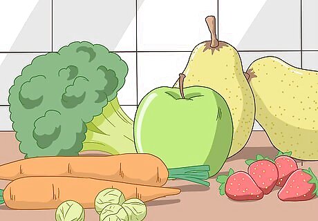 Eat fruits and vegetables. Fruits and vegetables are an important part of a thyroid diet. Fruits and vegetables provide your body with important vitamins and minerals, help fight inflammation, and provide antioxidants. This helps both hypothyroidism and hyperthyroidism. Make sure to eat goitrogenic vegetables in moderation. If you drink fruit juice, avoid processed, heavily sugared juices. Only drink all natural juices. Fruits and vegetables contain important nutrients for thyroid function, such as vitamin B6, C, E, and B2.
