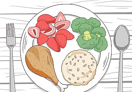 Eat a protein and carbohydrate at each meal. A proper thyroid diet for hypothyroidism or hyperthyroidism should make sure you don’t have blood sugar swings throughout the day. The foods you should eat should help regulate your blood sugar. To help with this, eat protein and complex carbohydrates at each meal. Make sure not to eat too many carbs. For a thyroid friendly diet, try to keep your carb intake low to moderate. Protein can help you stop losing weight if you have hyperthyroidism.