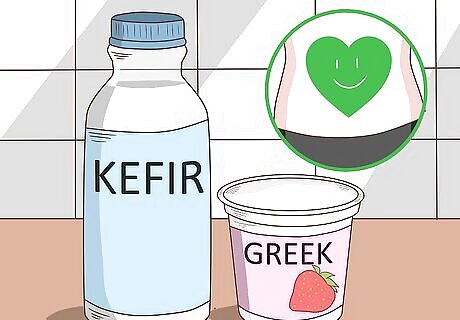 Eat more probiotic foods. Probiotic foods help improve gut health and increase healthy bacteria. Sometimes, thyroid problems can be from an unhealthy gut environment and leaky gut syndrome. Try kefir or greek yogurt, which have probiotics. You can also try kimchi, sauerkraut, natto, and kombucha. Goat’s milk yogurt also contains probiotics.