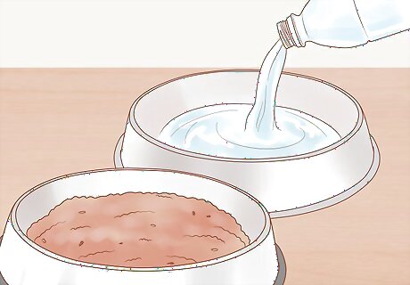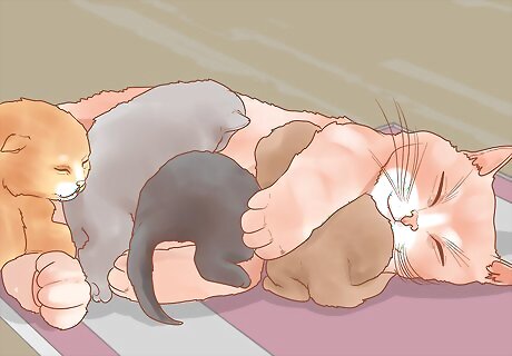 Let the mother do care work. If the kittens are with a mom and still nursing, let her take care of them. She will feed them and clean them herself, so you don't need to do that. However, you will need to keep a close eye on them in order to make sure each kitten is getting plenty of milk and attention. If there is a runt in the litter, make sure you give that kitten a little extra time with the mother cat alone, without the other kittens to compete for food. Make sure the mother cat is eating plenty of food. Feed her either dry or wet kitten food for as long as the kittens are nursing. The kitten food will give her the protein she needs to produce milk.