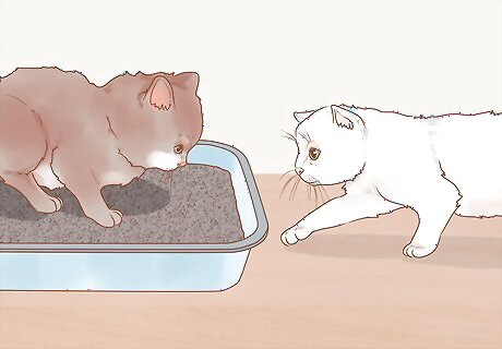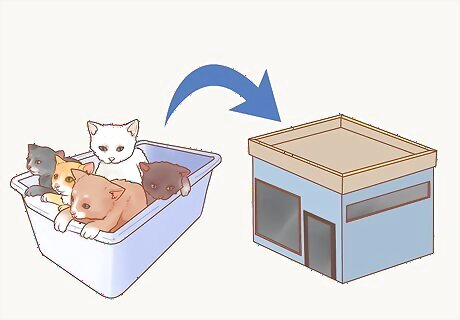 Litter-train the kittens. To do this, after every feeding (nursing, bottle feeding, eating solid food etc.), place the kitten in the litter box. It should then do its business. If a kitten has an accident, quickly pick it up as soon as possible and place the kitten in the litter box. With persistence, the kitten should learn how to use it. Kittens will usually learn how to use the litter box on their own or from their mother. Just make sure that the litter box is far from their food and kept clean. You can reinforce litter box use by praising the kitten after it uses the box. The litter box will need to be scooped at least three times a day, and the litter changed at least twice a week. Use clay litter instead of other types of litter, as clay litter can't be ingested as easily.