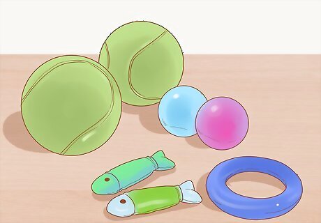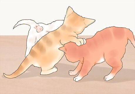 Give the kittens toys. You may want to get a couple of soft toys and some feather chasers to entertain the kittens. If the kittens are older, you may also consider getting a cat tree, as these can provide hours of fun and a nice place for the kitties to relax. Giving the kittens toys will entertain them and minimize the trouble they can get into if they are bored.