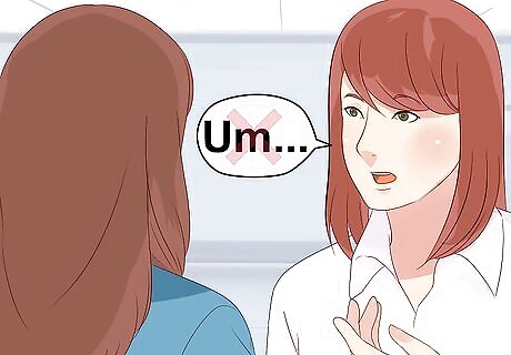 Watch how you address others. When you speak to those around you, watch the tone of voice you use. If you are making a declarative statement, speak in a strong, even tone. Don't end a sentence with a question mark unless it is a question. Watch out for filler language as, which uses words such as "um", "like", and "I think." These make you sound less sure of yourself. Also attempt to be as direct as possible. Even if what you have to say is uncomfortable, say it in a direct, head-on way. Those around you will appreciate your straightforward approach and respect you for it. Don't be defensive when you talk, either. If someone is challenging your authority or decision-making process, being defensive will make you seem less confident than simply sticking up for your own decision in a calm, collected manner.