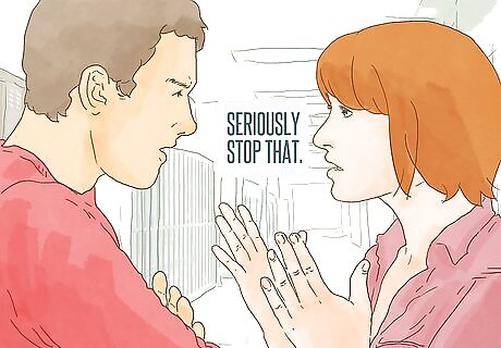Tell him to stop. Sometimes you can tell someone that you are not amused, and they will get the message. Look them in the eye and tell them to stop doing whatever is bothering you. Keep it short and simple. Try saying, “Chris, seriously, stop doing that.”