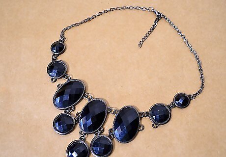 See if you can pull off a choker. Chokers are awesome with this look. Try not to make it look goth though. Other necklaces, bracelets, dark earrings, and chunky rings with either dark stones or all silver.