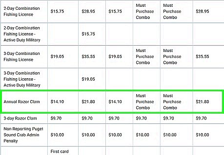 Shop for an Annual Razor Clam license if preferred. Resident (Aged 16-69): $14.10 Non-Resident: $21.80 Resident Senior (Aged 70+): $14.10 Youth (Aged 15): Must Purchase Combo Resident Disabled: Must Purchase Combo Non-Resident Disabled Veteran: $21.80 A 3-Day Razor Clam license is also available, for $9.70 (Resident, Non-Resident, Youth, Senior, Resident Disabled, Non-Resident Disabled Veteran).