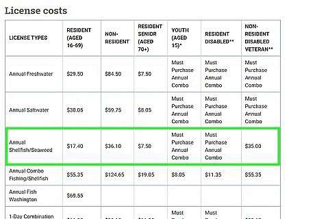 Pay a little less if you need an Annual Shellfish/Seaweed license: Resident (Aged 16-69): $17.40 Non-Resident: $36.10 Resident Senior (Aged 70+): $7.50 Youth (Aged 15): Must Purchase Combo Resident Disabled: Must Purchase Combo Non-Resident Disabled Veteran: $35.00