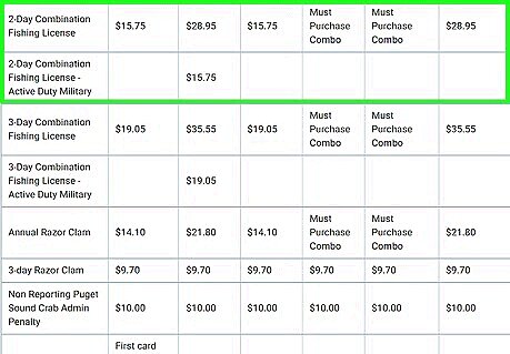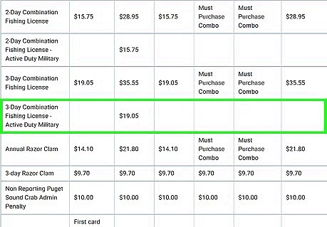 Use your military discount if applicable. You can get a 1-Day, 2-Day, or 3-Day Fresh Water/Salt Water/Shellfish licenses for Active Duty Military. This is $11.35 for the 1-day version, $15.75 for the 2-Day version, and $19.05 for the 3-Day version (non-resident pricing only; no variations).