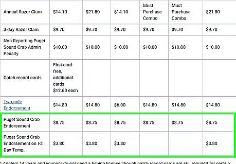 Buy a Puget Sound Crab Endorsement if needed. Resident, Non-Resident, Resident Senior, Youth, Resident Disabled, Non-Resident Disabled Veteran: $8.75 Puget Sound Crab Endorsement on 1-3 Day Temp. Resident, Non-Resident, Resident Senior, Non-Resident Disabled Veteran: $3.80