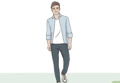 Wear clothes that accentuate your best features. Don’t just throw on the same t-shirt and ratty jeans combo every morning and call it a day. Take the time to piece together outfits that complement your frame and convey a sense of style, and don’t be afraid to experiment with new looks. You never know what a given item or ensemble might do for you, or what kind of duds she prefers. Pick out clothes that say something about what you like or how you see yourself. What you wear is not only a way of catching her eye, but also a means of self-expression. Like it or not, the way you dress says a lot about you. In fact, clothing is among the first things that most women notice. If you always look like you picked your outfit of the day out of the hamper at random, she may assume that you’re just as sloppy in other ways.