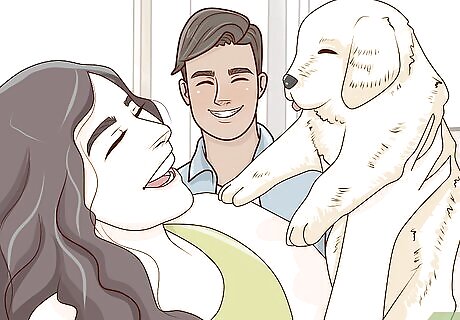 Introduce her to your pet. If you've got a dog, cat, bird, guinea pig, iguana, or goldfish at home, create an opportunity to let her see you with it. Broadcasting the fact that you're a caring pet owner will show her that you’re responsible, affectionate, and not afraid of commitment. This is a surefire way to score yourself some bonus points. Pets can also serve as excellent conversation starters, since almost everyone loves making new furry friends. If you're currently not close enough to see each other outside of school or work, or you don't have a good excuse to bring your pet around, offer to show her some pictures of your animal companion instead.