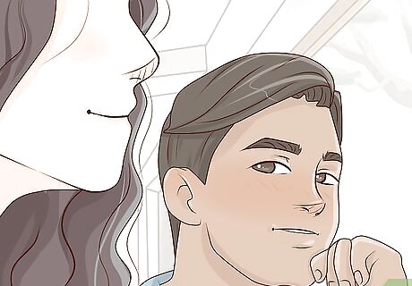 Practice good basic hygiene. First impressions count for a lot, especially if you’ve never even spoken to your crush. Make sure you look presentable whenever you know there’s a chance you might see her. Take a shower, comb your hair, brush your teeth, and apply deodorant. You’ll be glad you did once you get close. If you’re a guy, it’s also a good idea to keep your nails clipped and your facial hair neat and well-groomed. A spritz of cologne or perfume can make you more pleasant to be around. Just be careful not to overdo it! 1-2 light sprays around your wrists, neck, chest, or underarms should be more than enough to lend you the subtle allure you're looking for.