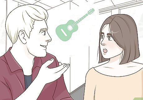 Drop hints about your most interesting traits or accomplishments. Wear an old player jersey with your name proudly printed on it, bring up a thrilling adventure that you went on recently, or give her a glimpse of a unique talent or ability. Low-key boasts like these can serve as tantalizing clues to your character, making her eager to find out more about you. Tailor your approach to her likes, interests, or personality traits. If you know she likes music, for instance, you might let her overhear that you’re in a band. Embrace your unique spirit and sense of individuality. Being interesting often means being different from everyone else.