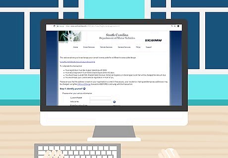 Access the Department of Motor Vehicles (DMV) plate application. The DMV’s website has a fully online application you can use to get a specialized license plate. Follow these steps to reach the application: This online application can only be used if you’re exchanging a regular license plate for a specialized one. If your vehicle isn’t already registered, you’ll need to use the DMV’s Electronic Vehicle Registration tool.