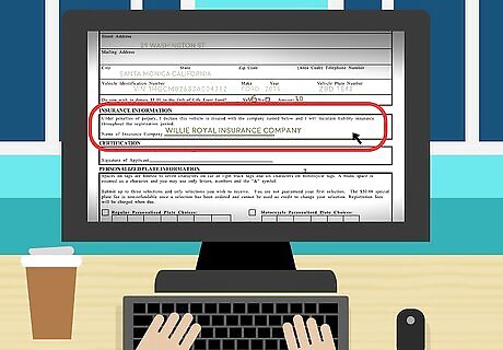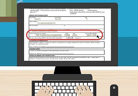 Fill in your vehicle information. This includes the make and model, Vehicle Identification Number (VIN) and current license plate number.
