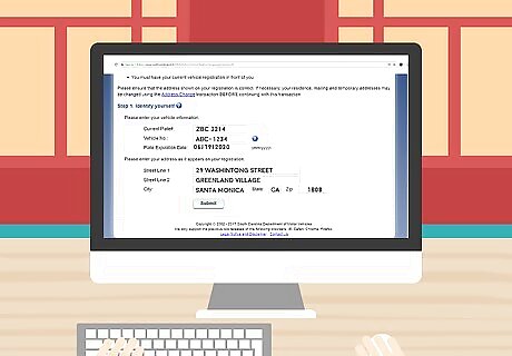 Follow the application’s instructions. You’ll need to enter information about your vehicle in order to proceed. Make sure you have the necessary information beforehand, such as your current license plate and vehicle number, your plate’s expiration date and your address.