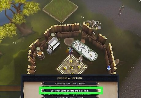 Get 99 Summoning. To summon a boss pet, you must have 99 summoning. Once you have that, left click the "Summon" option to have your new pet following you