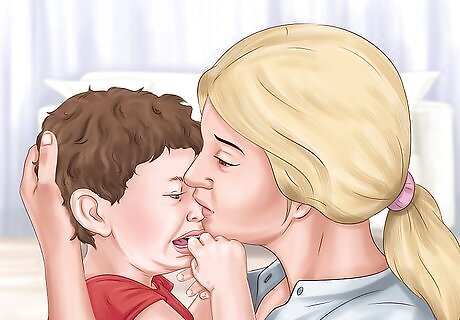 Comfort your child if they cry. When you transition your child to sleeping alone, they will likely feel fearful at first. Crying in your presence can still help them feel reassured, which is different than “crying it out.” If your child is hysterical, recognize that this won’t help them sleep. They might need a more gradual process. Hold your child and help them calm down if they become hysterical.