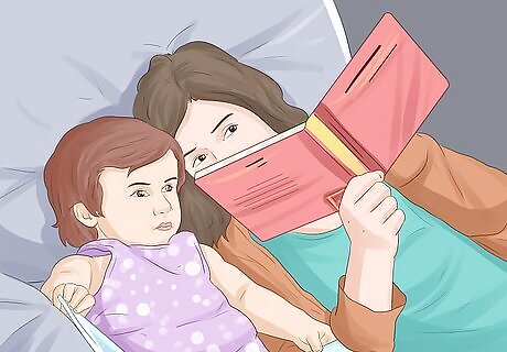 Help them relax before bedtime. If your child doesn’t want to fall asleep or has trouble winding down before bedtime, try a relaxing routine to help them calm down. Read stories together, sing songs, have some bedtime snuggles, or give your child a bath. These activities can help them learn to relax and fall asleep calmly and without a fight.