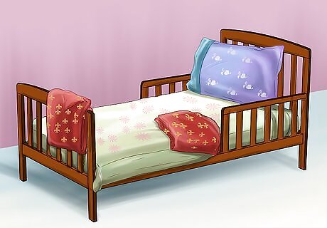 Make their room fun and enjoyable. Making the toddler’s new sleeping space more personal is another way to get them more enthusiastic about sleeping in a different room. They should feel excited about their room and have a sense of ownership in the process. Being excited about their room and their bed can make them less afraid to sleep alone. Give your toddler the task of picking out the sheets and blankets for their new bed. Giving the toddler this responsibility will help them feel more excited and grown-up.