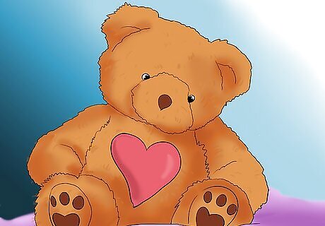 Give your child comforting objects to sleep with. Losing the security of having a parent close by can be scary for a child. Give your child other soothing objects such as a blanket, stuffed animal, or doll. These objects can help your child feel safe and reassured when they fall asleep or wake up in the night. If your child is scared of monsters, fill a spray bottle with water and call it “Monster Spray.” Whenever your child is scared, tell them to spray the monsters away.