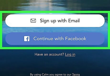 Create your account. Skip this step if you’re already signed in. If it’s your first time using the app, follow the on-screen instructions to select your top goals and create your free account. If you choose Sign up with Email, enter your name and email address, create your password, then tap Sign up. If you select Continue with Facebook, follow the on-screen instructions to sign into Facebook and set up your Calm account.