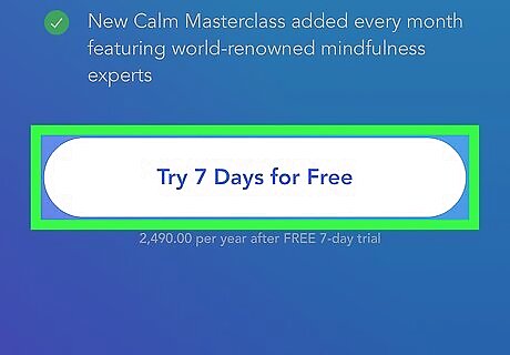 Tap Try 7 Days for Free. A pop-up containing details about the trial period will appear. If you were already signed in, tap the profile icon at the top-left corner of the screen, scroll down and tap Unlock Calm Premium before you’ll see this button.