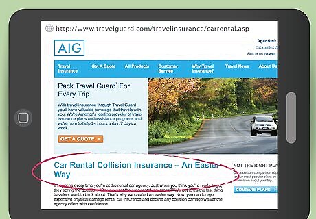 Add rental coverage onto a travel insurance plan. Getting rental coverage through your travel insurer can be a great option between getting insurance through your rental company and getting insurance through your card. But the rental insurance is an add on, so you’ll need to purchase it along with a travel insurance plan. There could be several reasons for not wanting to use your card company. Maybe your credit limit isn’t high enough, you don’t have another credit card, or you simply don’t want to deal with the hassle of getting reimbursed. Purchasing rental insurance through your travel insurer can be cheaper than going with the rental company, and easier than using a card company. Just remember to bring along a copy of your policy to the car rental agency.