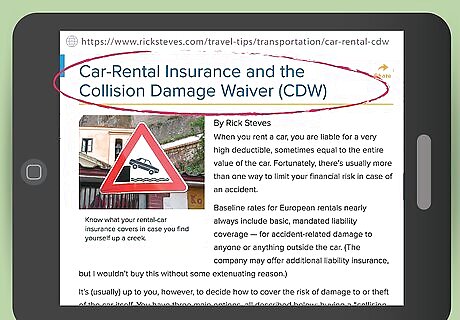 Tell the rental company where you’ll be driving the car. Make sure you let the rental company know what countries you’ll be visiting. Different countries have different risk levels, and what may be a covered occurrence in one country may not be a covered occurrence in another country. Italy and Ireland are two countries with peculiar rules with respect to insurers. If you’re travelling to either country, make sure your rental car company knows ahead of time.
